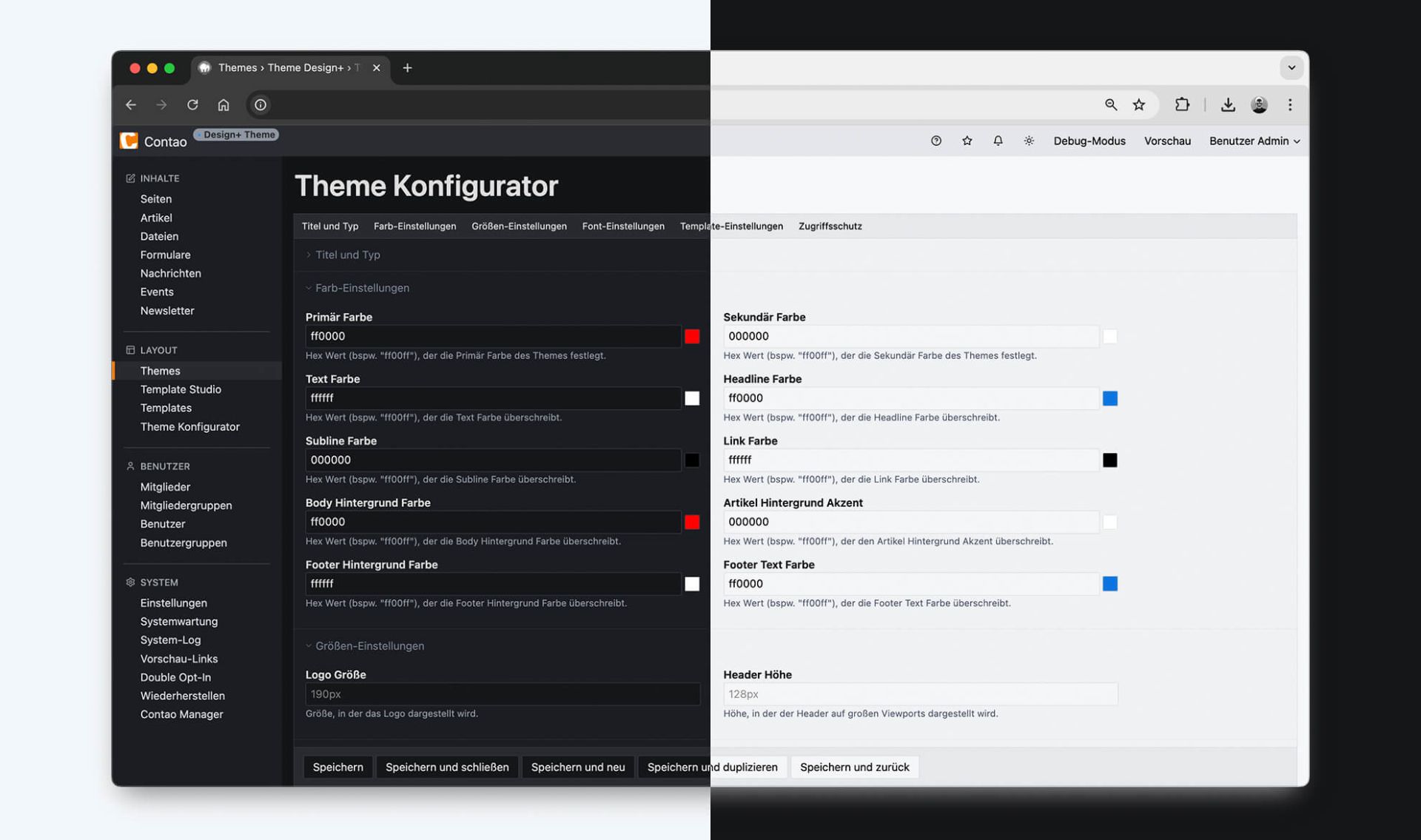 Design System as a Service – statt wilder CSS-Overrides & unübersichtlicher GUI-Einstellungen setzt das Contao Theme Design+ auf ein echtes Token-basiertes Design-System. Zentrale Design-Eigenschaften – von Schriften über Farben bis hin zu Layout-Elementen – lassen sich systematisch im Backend steuern. Ohne Code, aber mit Struktur.