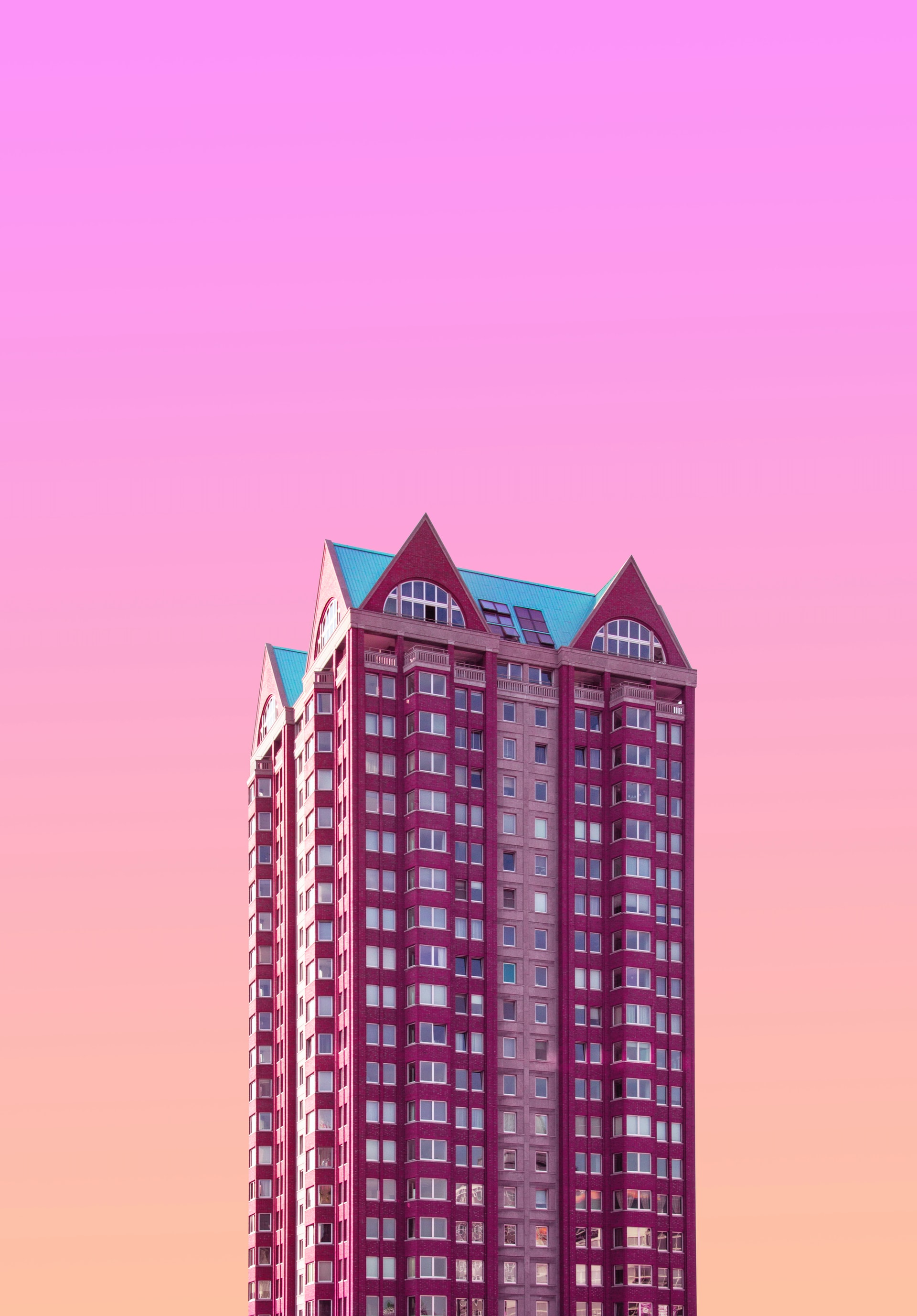Wolkenkratzer vor pinkem Himmel